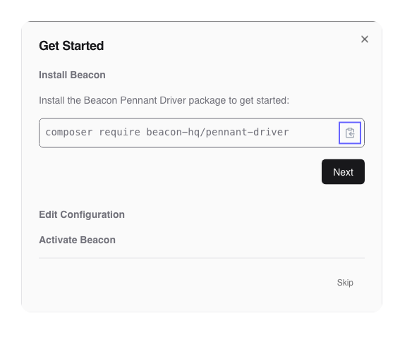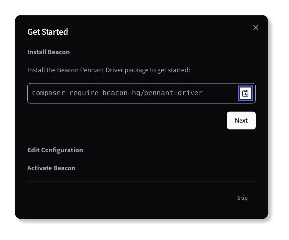 First, you will need to install the Beacon Pennant driver using Composer, click the Next button to proceed.
