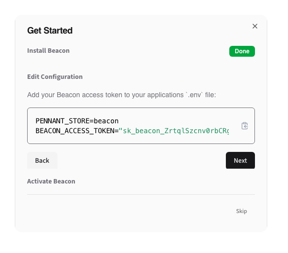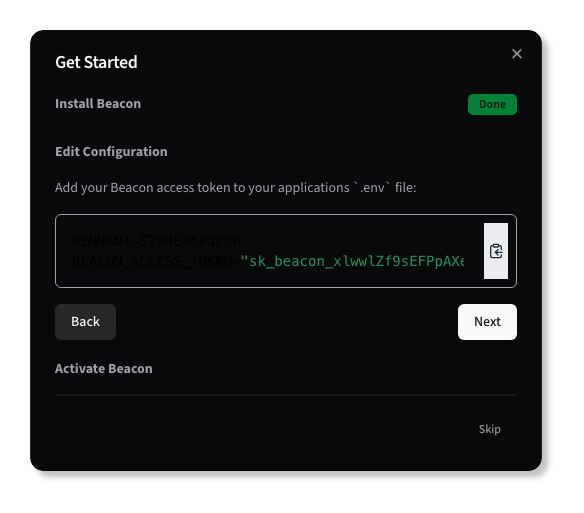 If you are already familiar with Beacon setup, or have completed it manually, you can click Skip to hide it going forward.